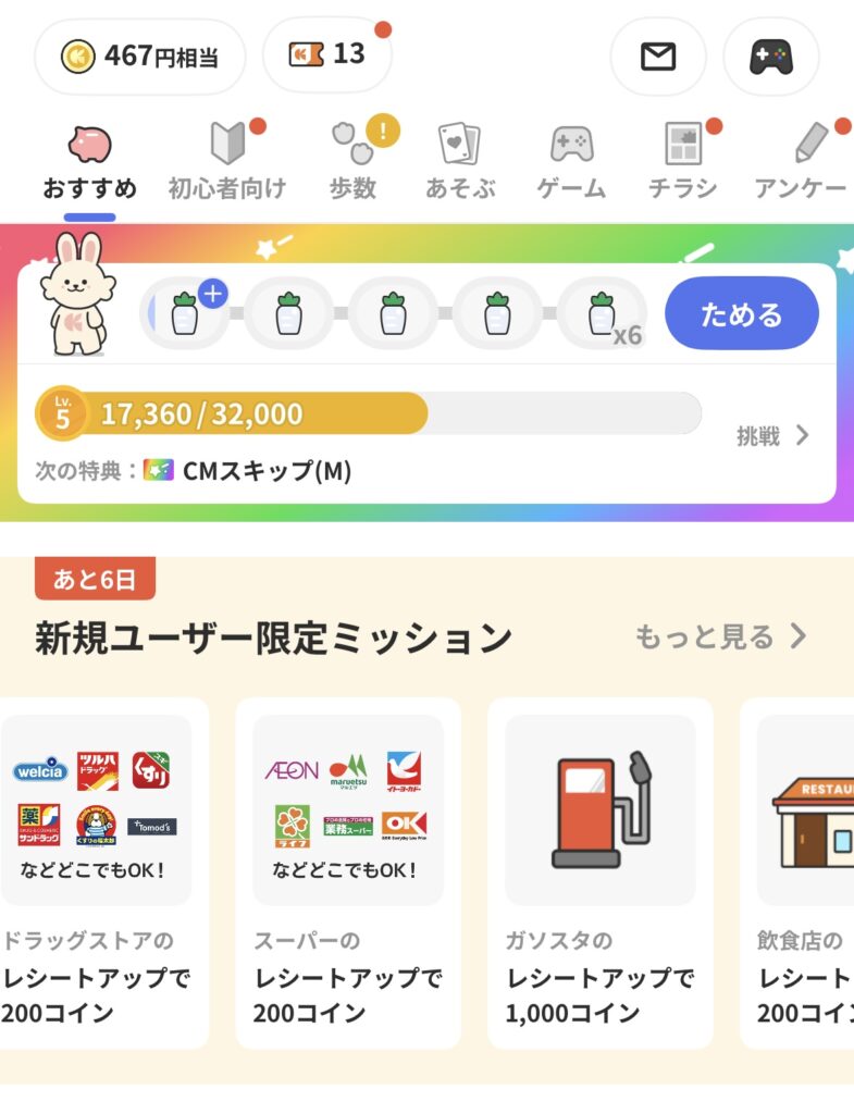 僕は気づいたら467円分まで貯まっていました
